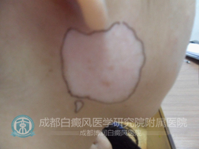 (患者初诊时,白斑边缘清晰,黑色素缺失严重)