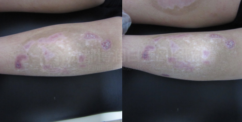 接待她的是我院的林永祥主任,根据她的身体状况,主任制定了一套疗法:采用308准分子光和中药熏蒸使得何女士的白癜风稳定下来,在后期不扩散稳定的情况下,使用表皮移植术对白斑部位进行手术治疗!短短三个月就看到了效果!