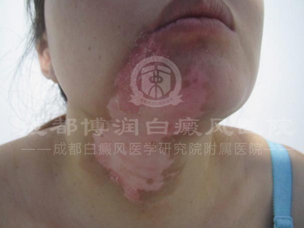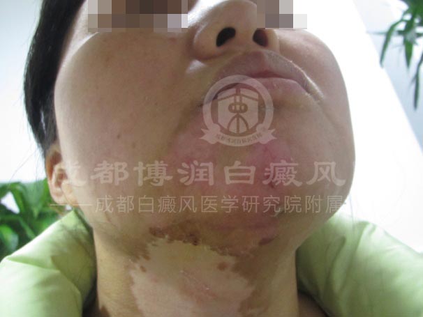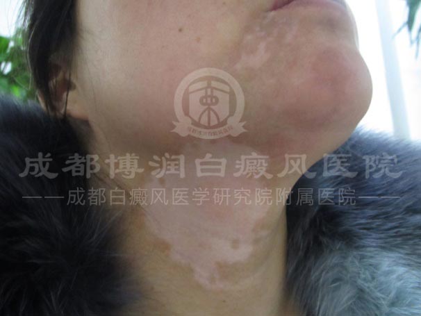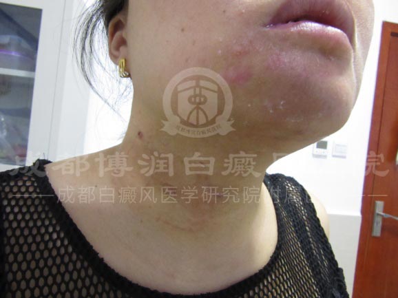 满心担忧的她赶紧到当地人民医院治疗,未果,反而变严重了;无奈之下,又找到成都某白癜风专科医院治疗,声称可以短期治愈的技术却也未能如愿以偿的治好白斑;较终,在其他病友的口中听闻、并来到了成都博润进行治疗。