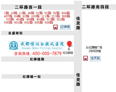 我院地址:成都市武侯区红牌楼佳灵路6号(红牌楼家乐福斜对面)