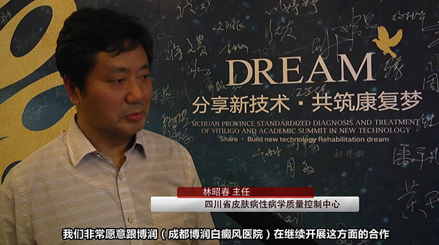 四川省皮肤病性病学质量控制林昭春主任接受采访说到:“我觉得这次培训班(峰会)非常成功;一方面我们是要向广大的基层的皮肤科医生,要推广我们在白癜风治疗的一套规范化办法, 同时,白癜风在治疗领域的一些新技术我们要向他们做一些介绍,而且把这个新技术逐步的进行推广,使我们广大的病人通过这个培训以后,能够得到医处为他们服好务,这就是我们基本的一个目的。”
