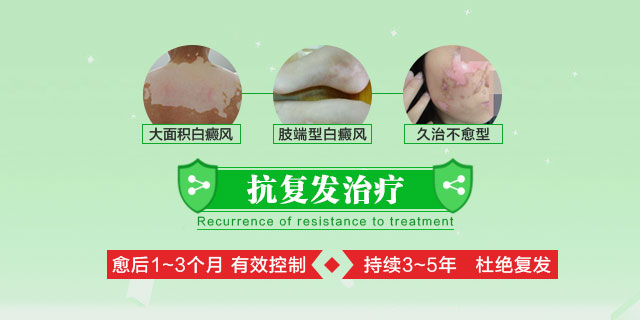 抗复发治疗是遵循白癜风疾病的发生发展规律,而提出的一套科学、系统的白癜风治疗方案。融合国内目前先进、有效的白癜风治疗技术“表皮移植术”等,彻底解决了大面积、久治不愈型、肢端型白癜风治疗难题,也彻底避免了临床上治疗白癜风方法单一、千人一方的问题,科学治疗,有效防复发。