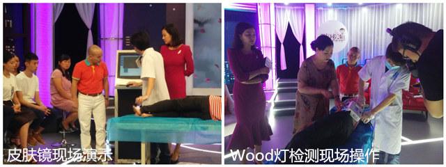 我院新技术——“皮肤镜”亮相节目现场,作为新的白癜风检测技术之一,现场展示检测方法与效果。