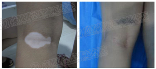 腿部白斑治疗前后