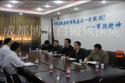 3月24日,武侯区区委副书记李旭、武侯区区委党的群众路线教育实践活动第七督导组组长周孝全、武侯区区委办主任颜崇文、红牌楼街道党工委书记卓勇、红牌楼街道党工委副书记穆文元、红牌楼街道办工会主席张仲荣一行来到成都博润白癜风医院调研指导工作。